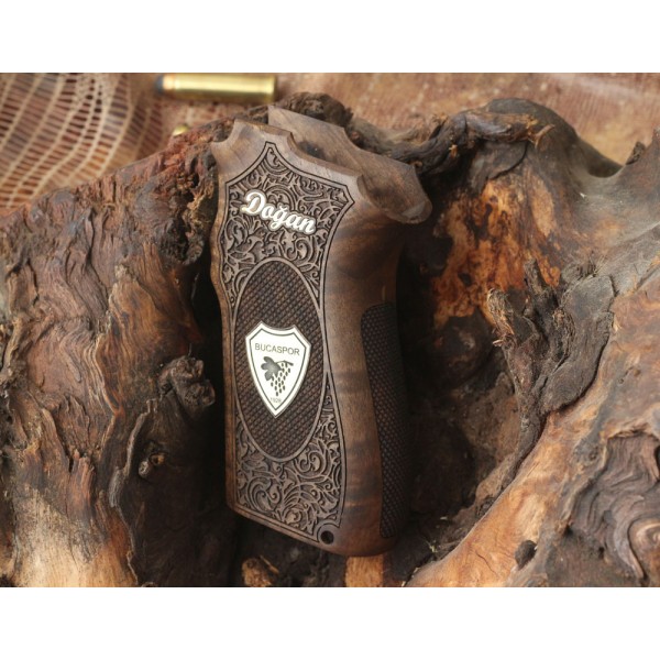 The KSD Brand Smith Wesson 5904-5906 Compatible Metal Grips Other Designs offers an elegant design and superior quality. Its ergonomics provide a comfortable experience for the user, while the natural beauty of walnut adds sophistication to your fire..