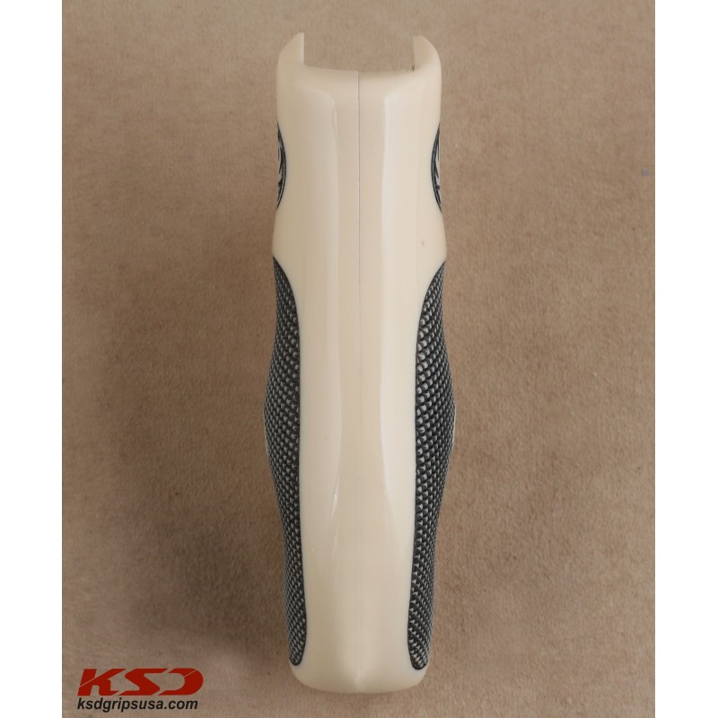 The KSD Brand Ruger SP101 Compatible Ivory Acrylic Grips Diamond offers an elegant design and superior quality. Its ergonomics provide a comfortable experience for the user, while the natural beauty of walnut adds sophistication to your firearm. This grip perfectly matches the Colt 1911, fitting your gun as if it was custom-made.
